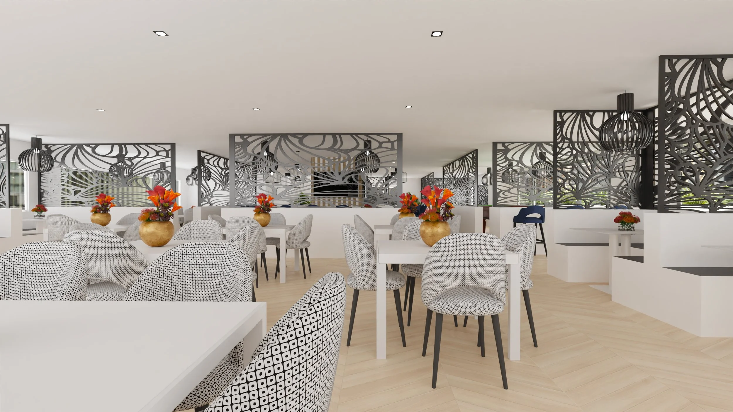 Pour ce projet il s’agissait d’aménager et décorer un restaurant avec espace bar