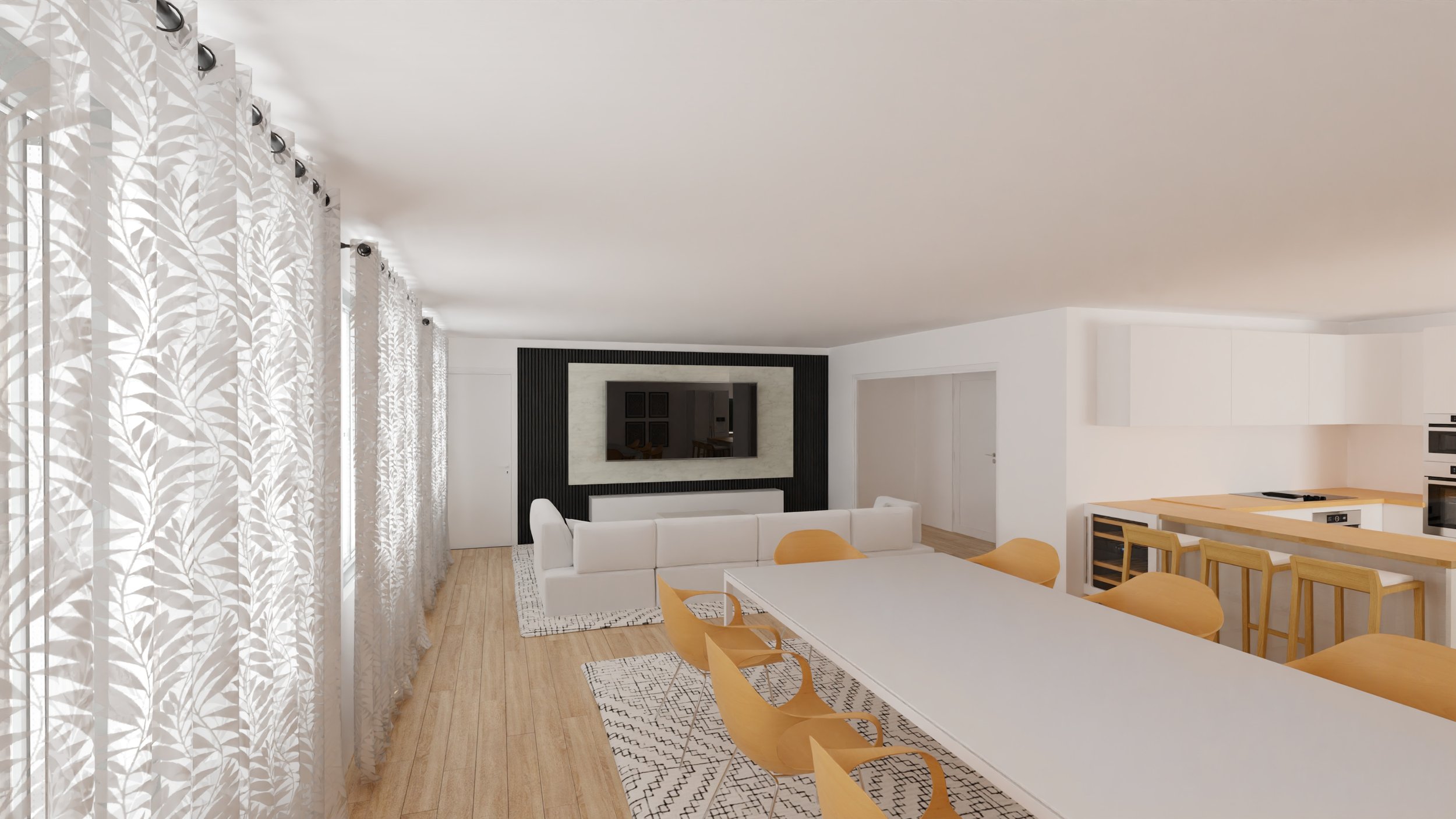 Projet Chatenay MalabryPour ce projet il s’agissait de décorer un séjour avec cuisine sur mesure et une chambre