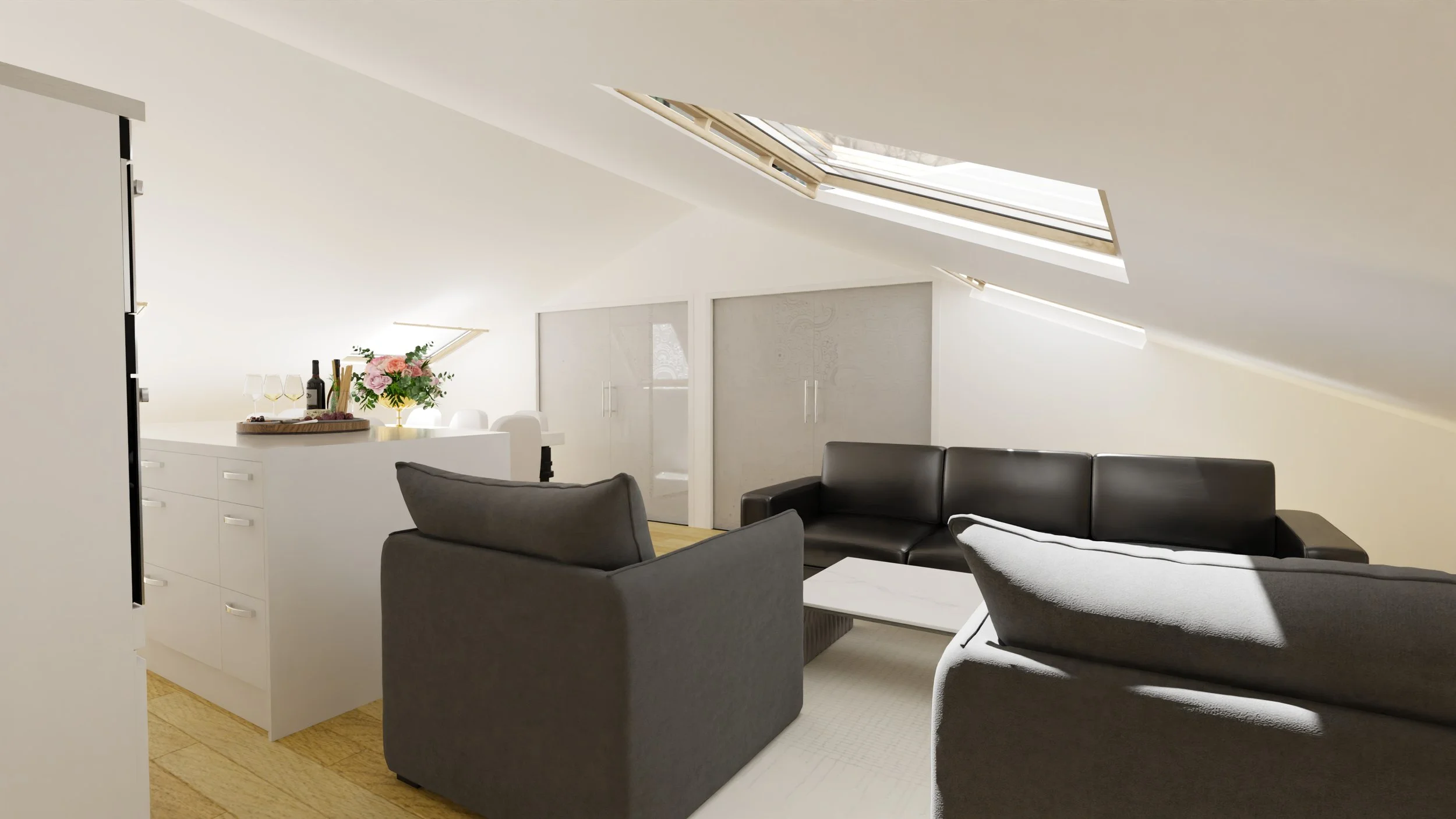 Projet OrsayPour ce projet il s’agissait de la surélévation de la toiture d’une maison afin d’aménager les combles avec la création d’une chambre, d’une salle de bain, d’une kitchenette, d’un espace de vie