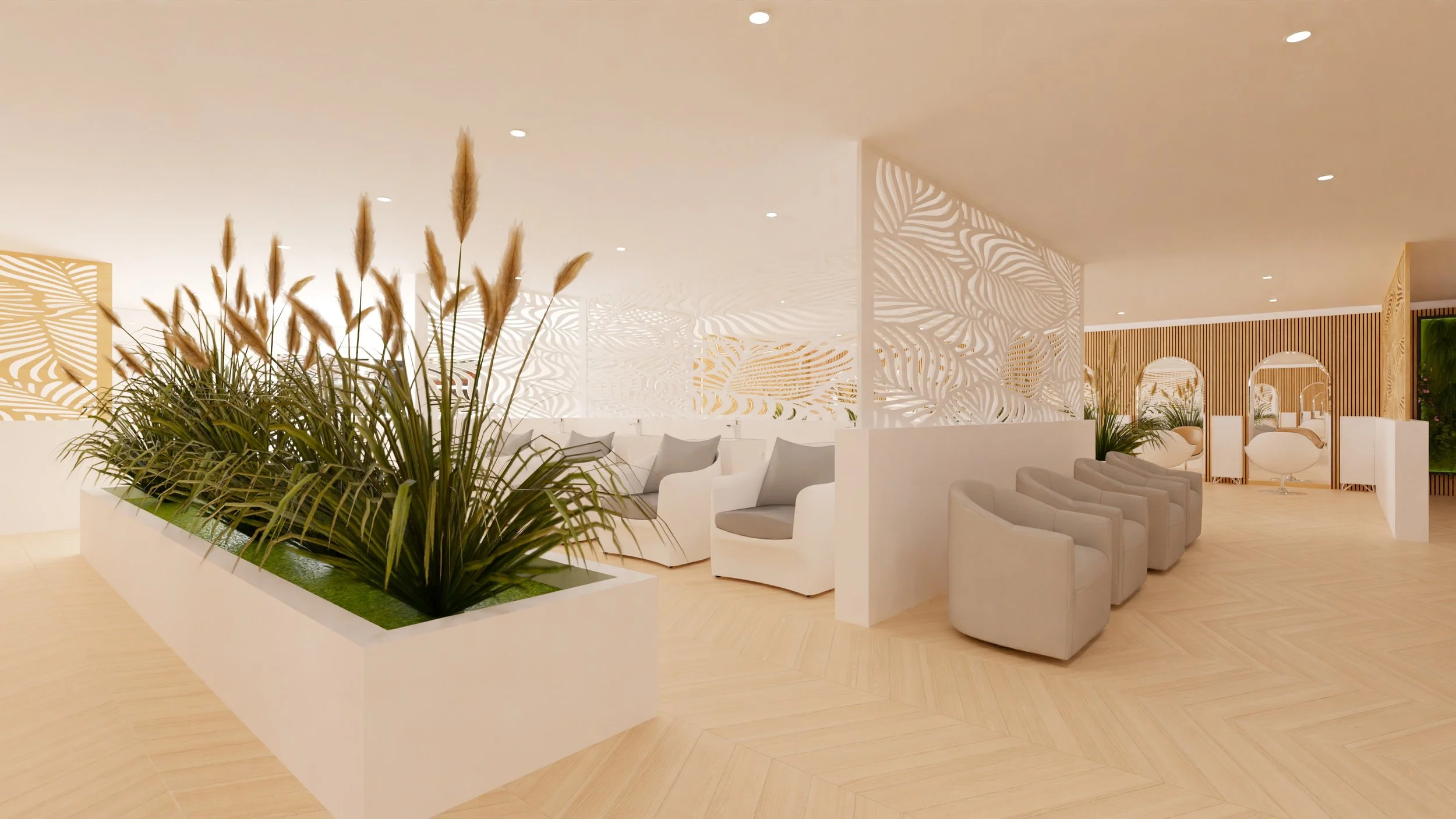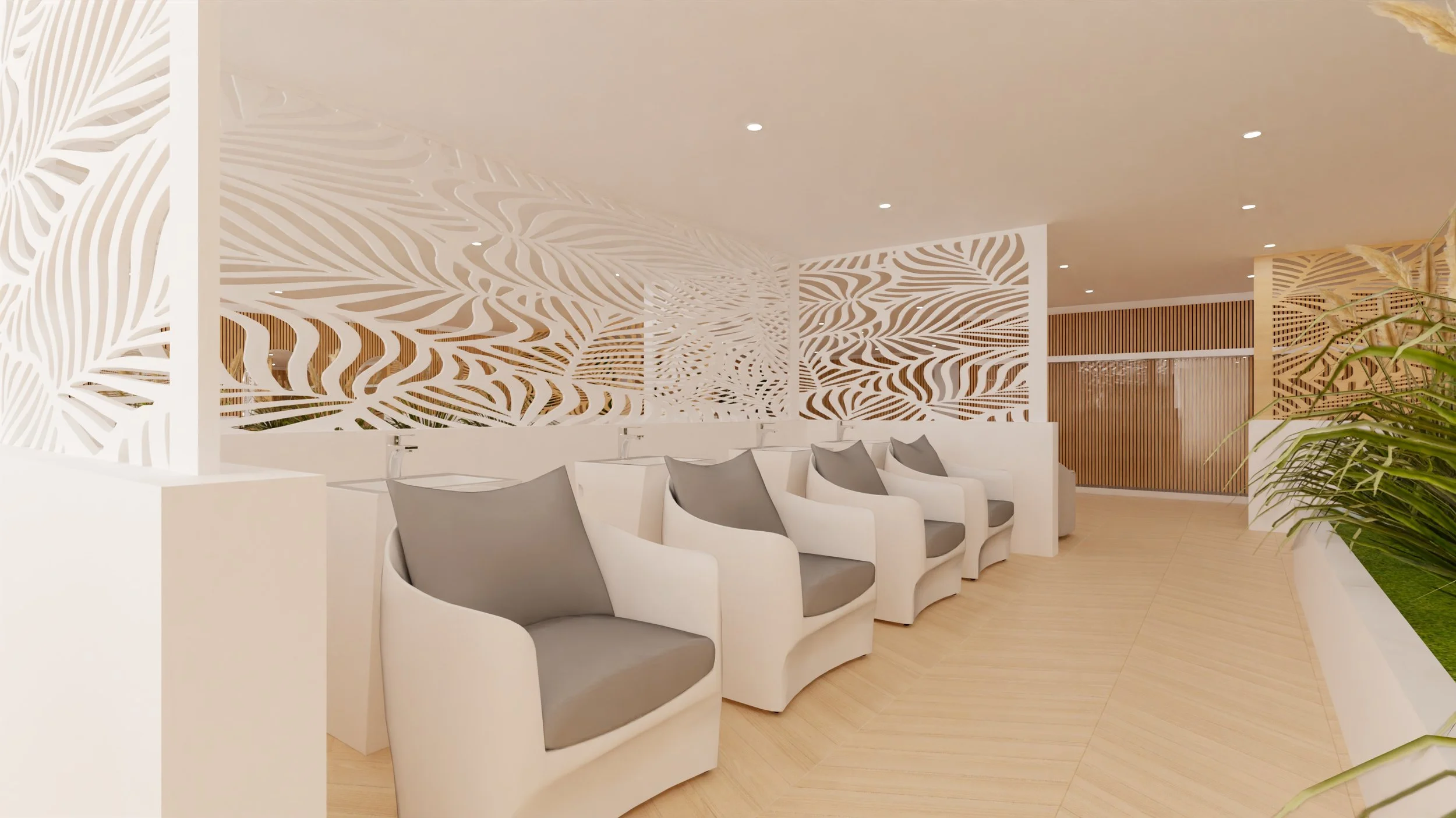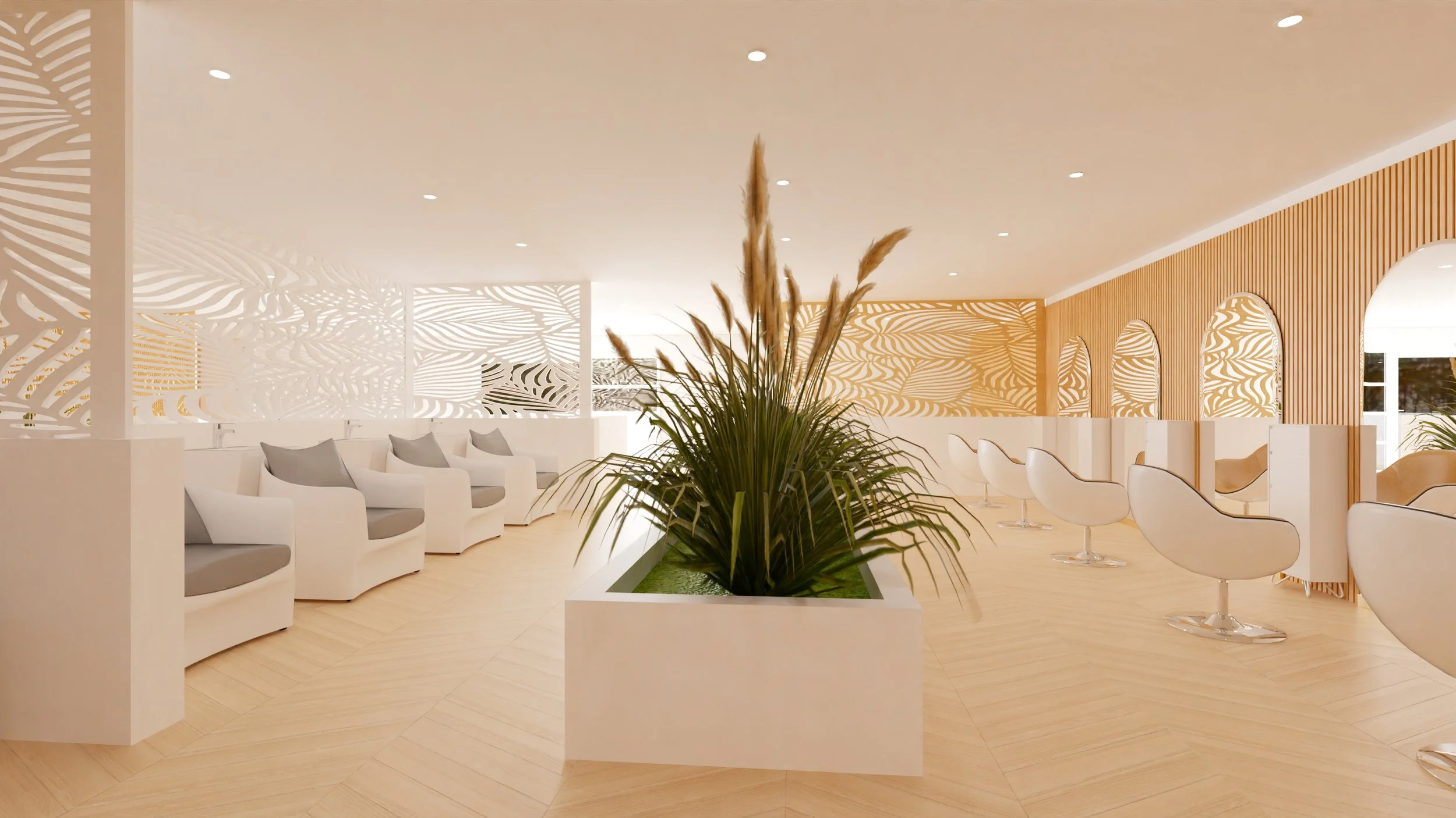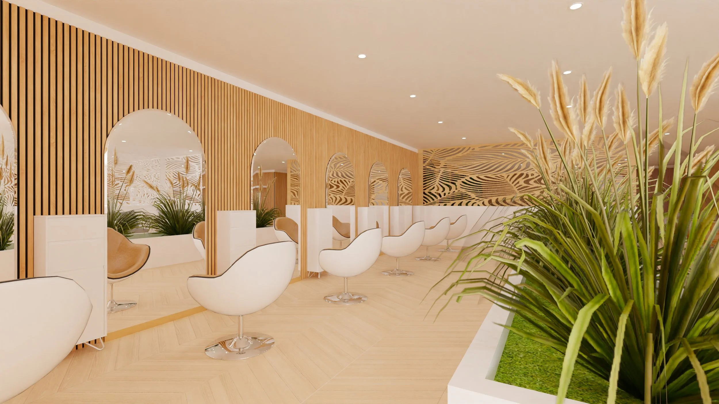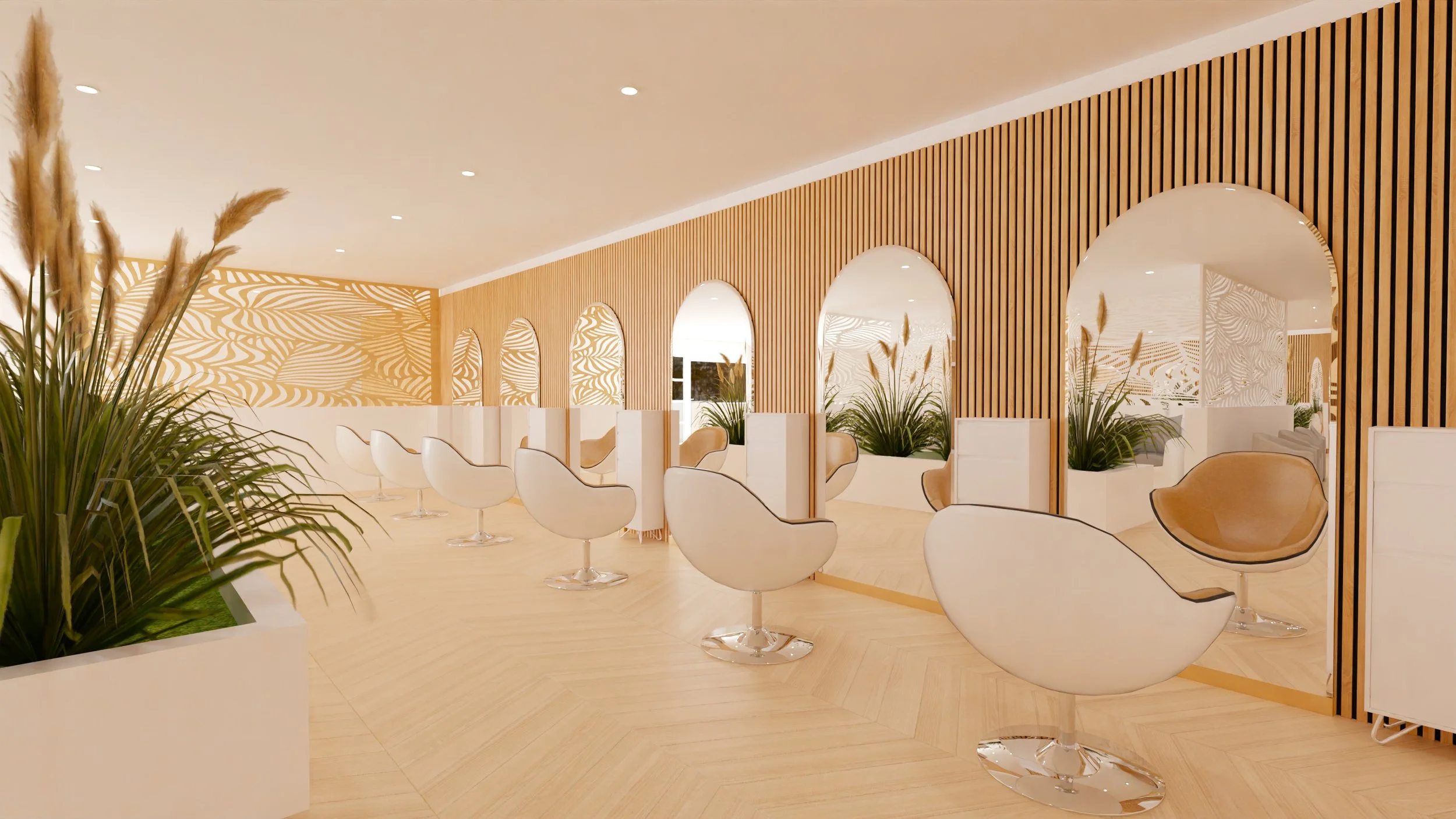 Projet Paris 20èmePour ce projet il s’agissait d’aménager et décorer un salon de coiffure faisant office de pédicure et manucure
